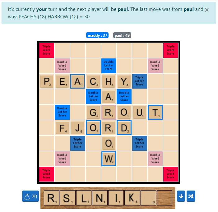 This is played with the same Scrabble rules as the standard board with the exception of the available tiles and the bonus spaces.